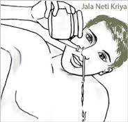 Elle consiste à verser dans un lota (pot adapté avec un embout qui permet d’introduire l’extrémité du pot à l’entrée des narines simplement ou encore une théière que l’on dédiera ensuite à cet effet..) une quantité d’eau tiède ou froide selon les effets escomptés ainsi qu’une petite pincée de sel (env. une cuillère à café par 1/2 litre d’eau).